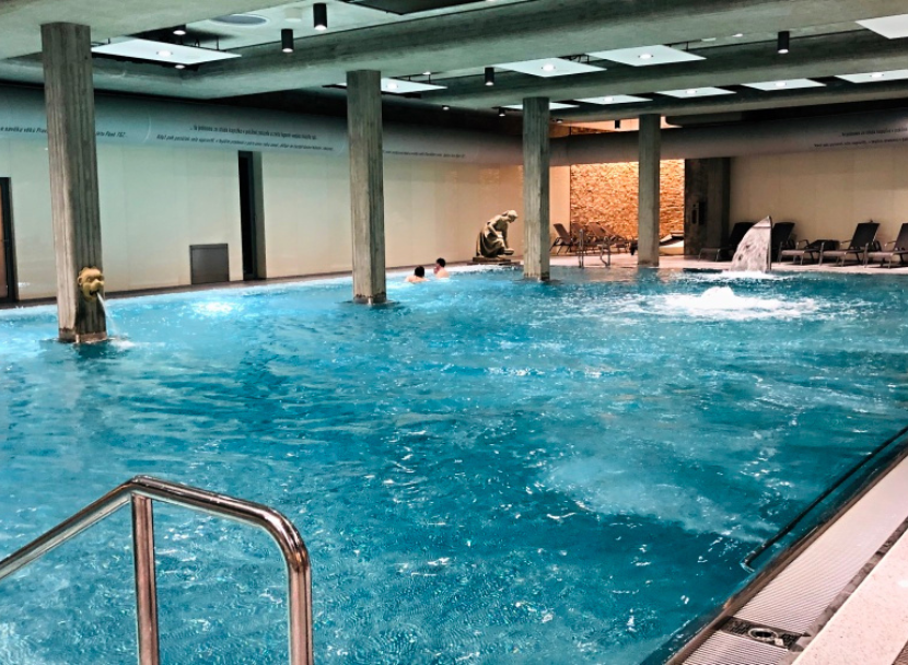 The spa features a large thermal swimming pool , filled with natural healing mineral water, offering relaxation and hydrotherapy benefits. The wellness centre also includes: